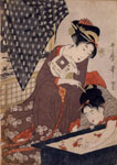石川豊信「文を書く遊女」