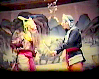 孟良が番兵を防ぐ間に、楊六郎は脱出するが、番兵の急追を受けて、二人は、分かれ分かれになる。