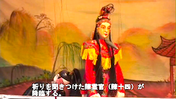 福建省福州生れと伝わる陳十四(陳靖姑)は、浙江南部でも、雨水順調、妖怪退治で地域の安寧を守る女神として、人々に篤く信仰されている。陳十四の生涯と妖怪退治の物語は、清代の小説『閩都別記』(里人可求作)のほか、「娘娘傳」「平妖傳」「霊経」「南游」などと呼ばれて、木偶戯、地方劇、語り物の鼓詞、漁鼓などで演じられ、知らない人がいないほど広く親しまれている。 福建と境を接する山岳地帯に位置する泰順は、古くから「木偶の郷」と呼ばれ、人形芝居が盛んな地域で、特に旧正月には、あちこちの廟で、糸操りの「娘娘傳」が上演される。 この劇は、信仰と深く結びついていて、必ず女神像の前(無ければ形代を祀る)で上演し、女神登場の場面では、線香を供え、霊符を燃やす。人形遣いは、上演中は精進潔斎する。 「娘娘傳」は13段、7日7晩で上演される。 観音の髪の毛が誤ってこの世に落ちて蛇の精になった。蛇の害を防ぐため、観音は2滴の血を滴らすと、雨水となって福州の陳道士の妻の口に入り、陳靖姑が生まれた。陳靖姑は閭山で修行し、各地の妖怪を退治し、雨水順調、子授けにも霊験あらたかだと信じられ、土地の守護神として篤く信仰される。泉州の洛陽橋建設にまつわる話を始め、多くの民間伝承と結びついて語られるが、猿の妖怪が出てくるこの段は、閩南語地区で特に人気があり、一段だけ演じるときにはこの段が演じられることが多い。 本動画では、第5段「揚州府で妖怪紅毛猴を退治する」の段から一部を公開する。 なお、「中国木偶戯関係写真資料データベース」検索頁で、演目に神仙「娘娘傳」、年月日に新暦「2008年2月19日」と入力すると、この動画の画像をまとめて見られるので、参照いただければ幸いである。 |